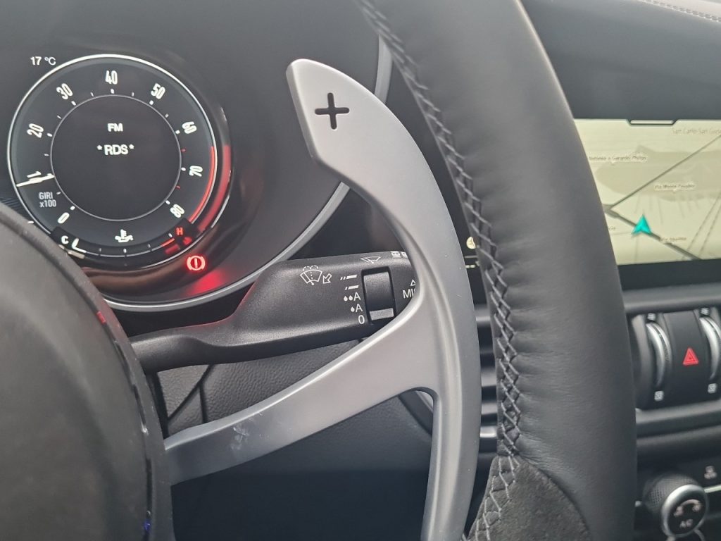 DOTAZIONI DI SERIE: Accensione automatica degli anabbaglianti con sensore crepuscolare, Active Blind Spot Monitoring (BSM) con cross path detection, Adaptive Cruise Control, Alfa Active Suspension - Sospensioni attive, Alfa Connect Box, Alfa Connect Navi 8.8'' Multitouch (Radio, Navigatore, Mp3, Aux-in, Bluetooth), Alfa Romeo Servizi Connessi (10 anni di Connect ONE e 3 anni di Connect PLUS),, Apertura/Chiusura porte senza chiave, Apple CarPlay / Android, Cerchi in lega da 19'' bruniti a 5 fori, Climatizzatore automatico, Comandi multifunzione al volante, cornice cristalli esterna nero lucido, DNA unlatched Differenziale meccanico Dynamic Steering Torque (DST) Dynamic Suspension, Fari full led matrix adattivi con funzionalità dinamiche Fari posteriori a LED con trattamento lente trasparente , Frenata automatica d'emergenza con riconoscimento pedoni Funzione Air Quality System (AQS), Inserti in carbonio su plancia, pannelli porta e tunnel centrale, Luci di cortesia su maniglie esterne, Minigonne in carbonio, Palette cambio al volante in alluminio, Paraurti posteriore sportivo con estrattore, Pedaliera sportiva in alluminio , Aero Splitter, Quadro strumenti a cannocchiale da 12,3'' personalizzabile, Ricarica wireless, Rilevamento sonnolenza conducente, Rivestimento in pelle su plancia, consolle centrale e pannelli porta ,Rivestimento leva cambio in pelle sportiva , Sedile posteriore abbattibile 40/20/40 con poggiabraccio integrato Sedili sportivi con inserti in pelle, Sensore pioggia per tergicristallo, Sensori di parcheggio anteriori e posteriori ,Sintonizzatore Radio DAB Sistema audio Hi-Fi con 14 altoparlanti, incl. subwoofer 470W, Sistema automatico di regolazione abbaglianti, Sospens. poster. nivomat + ass.ribass. Specchi retrovisori esterni elettrocromici ,Specchi retrovisori esterni ripiegabili elettricamente, Specchio retrovisore interno elettrocromico Spoiler posteriore in carbonio, Telecamera posteriore di parchegg,io con griglie dinamiche, Traffic Sign Recognition (TSR) ,Ugelli riscaldati per tergicristalli ,Vetri posteriori oscurati, Volante Quadrifoglio in pelle e Alcantara con inserto in carbonio e comando d'accensione rosso