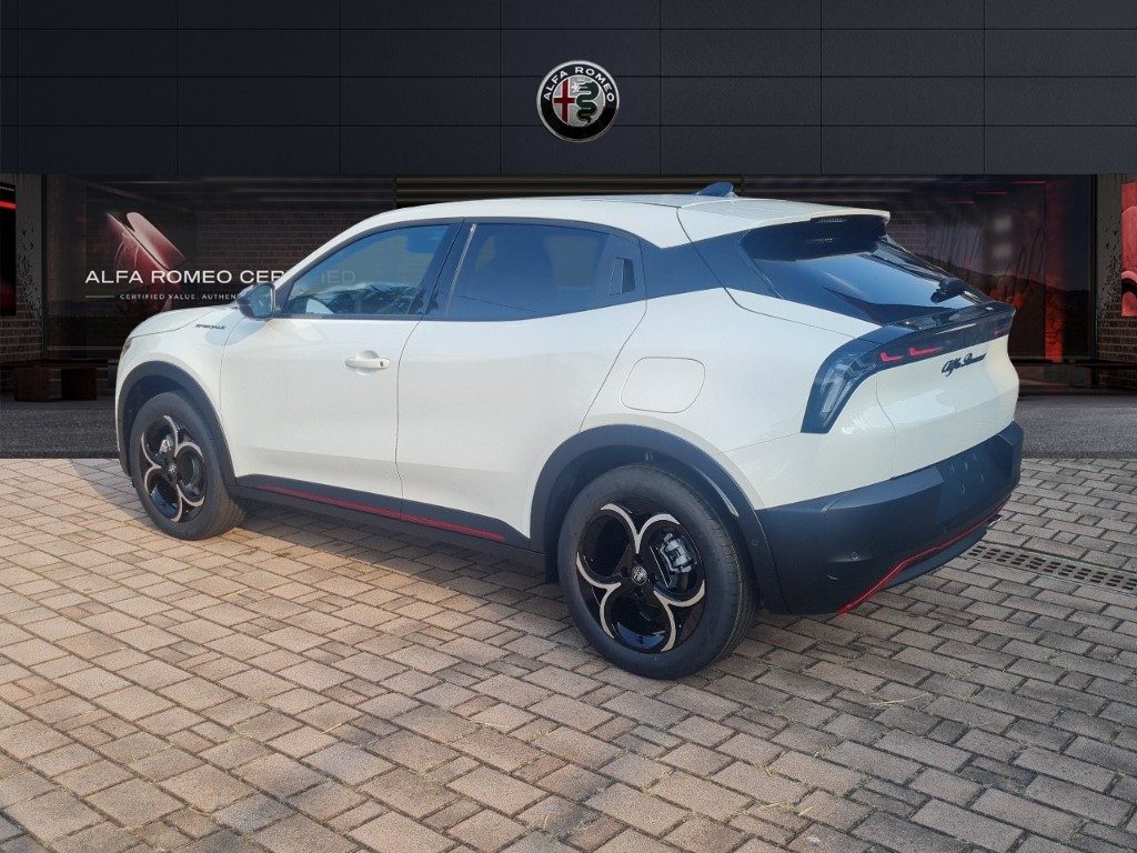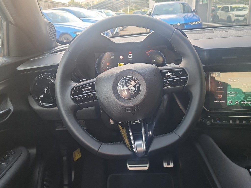 PRINCIPALI DOTAZIONI DI SERIE : 1 porta USB-C posteriore,Alfa Connect Box Alfa Romeo Servizi Connessi (10 anni di Connect ONE e 3 anni di Connect PLUS), Alzacristalli elettrici anteriori/posteriori, Apertura/chisura porte senza chiave, Avviamento motore senza chiave,Bracciolo anteriore regolabile con vano, Cerchi in lega da 18" Fori, Chiamata automatica d'emergenza, Climatizzatore automatico, Cruise Control Adattivo con riconoscimento segnali stradali, Fari a LED Fari posteriori a LED, Frenata automatica di emergenza con riconoscimento pedoni, Freno di stazionamento elettronico, Impianto Audio 6 altoparlanti, Lane centering e Traffic Jam Assist, Luci ambiente interne, Palette del cambio al volante, Piano baule regolabile a 3 livelli , Plafoniera anteriore e posteriore LED touch, Poggiatesta posteriore, Portellone posteriore ad apertura e chiusura elettrica con funzione hands free, Riconoscimento segnali stradali, Sedile posteriore abbattibile 60/40 ,Selettore modalità di guida, Sensore pioggia per tergicristallo, Sensori di parcheggio posteriori, Sistema Infotainment con display da 10,25" con navigazione, 2 porte USB, Bluetooth e comandi vocali Specchietti retrovisori esterni regolabili elettricamente, Telecamera posteriore con griglie dinamiche, Vetri posteriori oscurati, Volante in pelle .