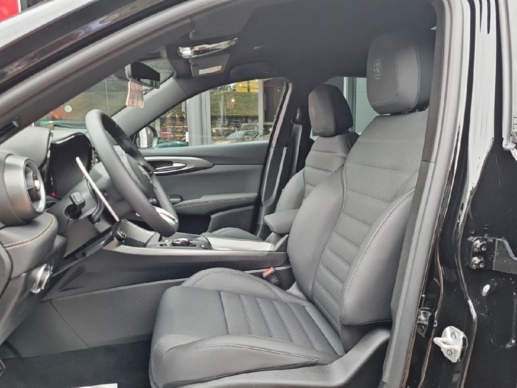 ALFA DNA con modalità ESC OFF, Accensione automatica abbaglianti, Airbag ginocchio conducente e passeggero, Alfa Dynamic Suspension Alfa Romeo Servizi Connessi (10 anni di Connect ONE e 3 anni di Connect PLUS) ,Apertura/chiusura porte senza chiave, Apple Car Play/Android Auto, Avviso di collisione frontale , Cerchio in lega da 19'' diamantati nero lucido, Climatizzatore automatico bizona con sensore Air Quality System (AQS) , Cruise Control adattivo, Doppia presa USB, Fari full led matrix adattivi e funzionalità dinamiche, Finitura contorno esterno finestrini nero lucido, Frenata automatica d'emergenza con riconoscimento pedoni, Pedaliera sportiva in alluminio, Regolazione sedili elettrica a 8 vie lato guidatore e passeggero ,Riconoscimento segnali stradali con navigazione, Rilevazione sonnolenza conducente , Sedile posteriore abbattibile 60/40 con ski pass e bracciolo poggiatesta centrale, Sedili con inserti in pelle, Sensori di parcheggio anteriori e posteriori ,telecamera posteriore con griglie dinamiche , Infotainment da 10.25" con navigazione, 2 porte USB, Bluetooth e comandi vocali, Sistema di mantenimento corsia, Sospensioni adattive Dual Stage Valve, Specchi retrovisori riscaldati elettricamente , Specchietto retrovisore interno elettrocromico , Tergicristalli con sensore pioggia,Volante sportivo con inserti in pelle.